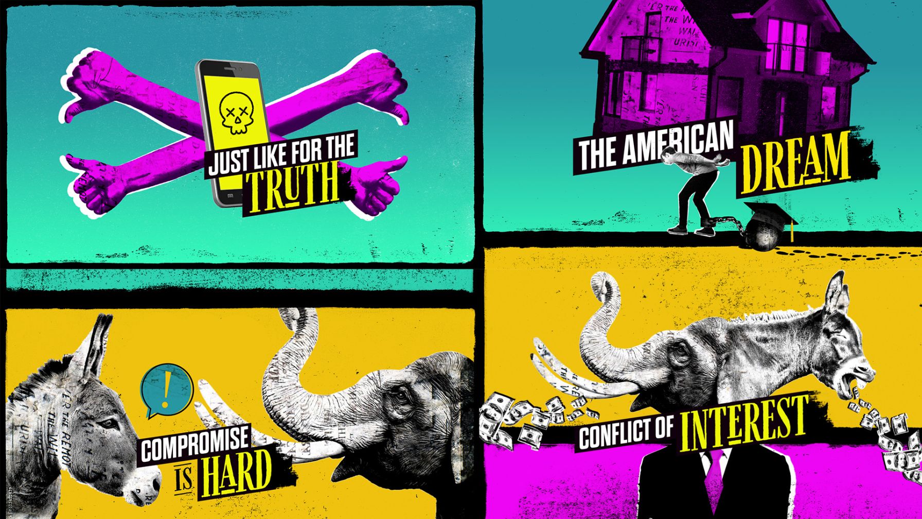 in unconventional ways to do the impossible: illustrate the common ground in American politics.